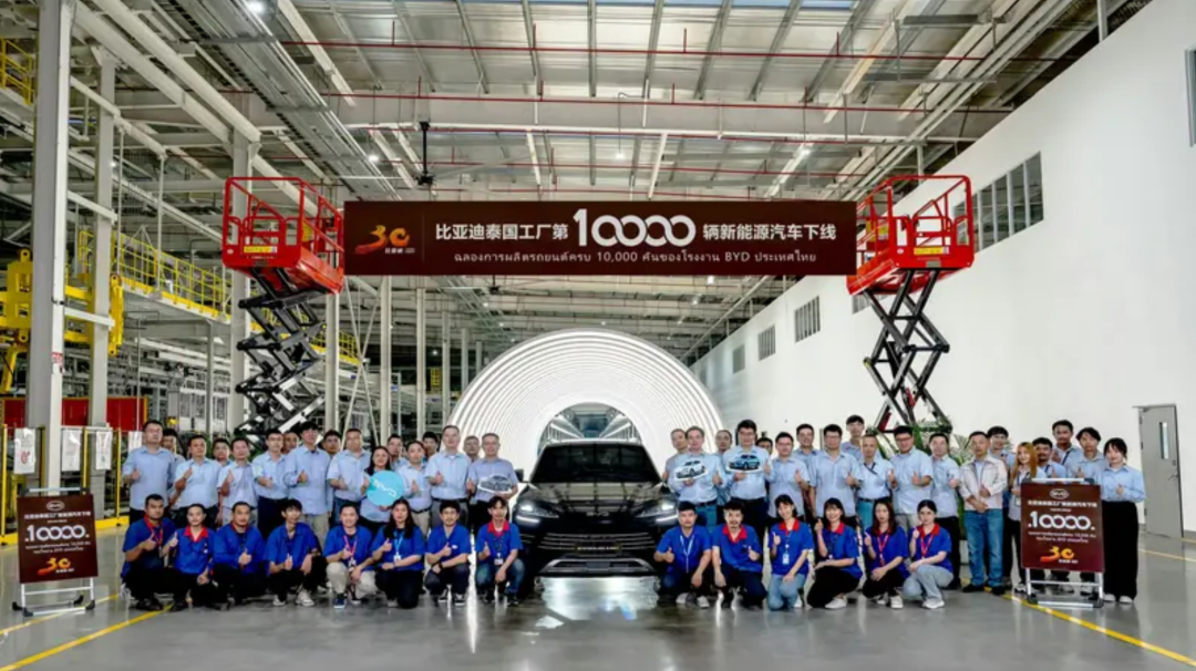 近日,比亚迪汽车宣布,其泰国工厂于11月8日在罗勇基地迎来了第1万辆新能源汽车的下线,成为在泰国最快达到这一里程碑的中国汽车品牌。
