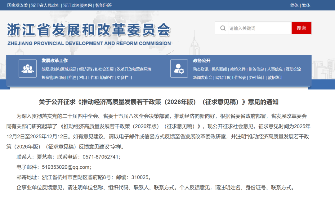 为深入贯彻落实党的二十届四中全会、省委十五届八次全会决策部署,推动经济向新向好,根据省委省政府部署,省发展改革委会同有关部门研究起草了 《推动经济高质量发展若干政策(2026年版)(征求意见稿)》,现公开征求社会意见。《征求意见》明确: